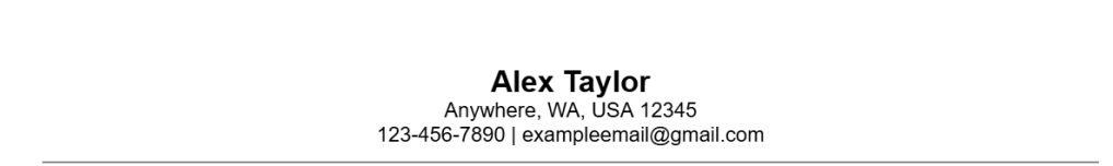 First, develop your header. Instead of putting your full address, just put the city, state, country, and zip code. Also be sure to include your full name, phone number (country code if not from NZ) and email. I like to add a line on the bottom to separate it from the rest of the resume.